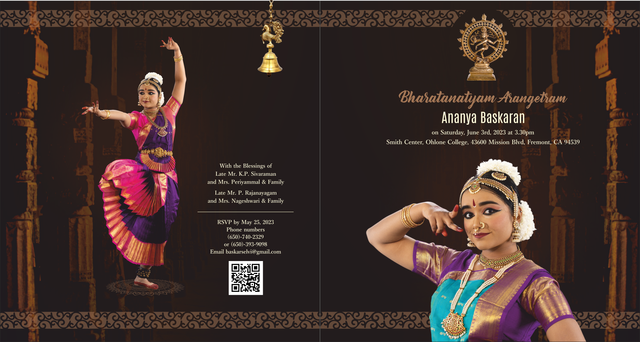 Natya-Laya blends Bharatanatyam's cultural heritage with modern design, creating exquisite invitations and brochures for performers in India and the USA.